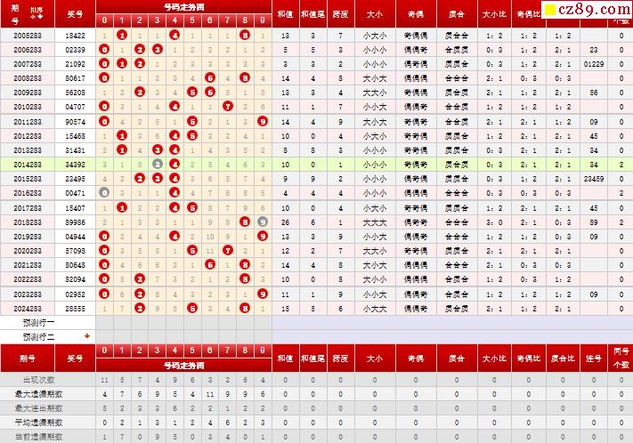 第283期体彩P3历史同期对比
