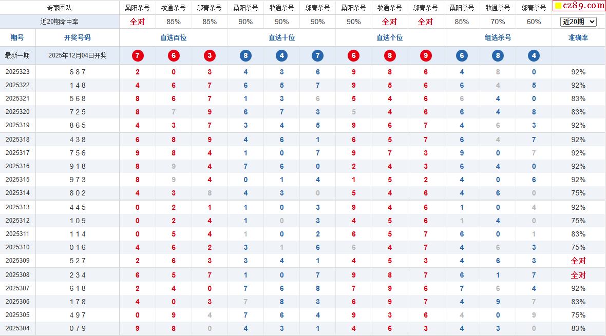 25年325期彩宝贝专家体彩P3杀号定码图表